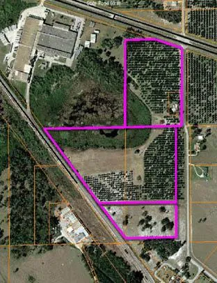 Price Reduced January 2011! Possible Owner Financing. 43+/- acres with 22+/- acres planted in orange grove. 350+/- feet frontage on Highway 60 and 2,139+/- feet frontage on West Lake Wales Road. 1,500+/- frontage on rail line. Currently an orange grove and pasture. Future land use is Industrial-FLU. The owner is willing to divide into tracts. Tract A is 14 acres, 350 ft frontage on SR 60 and 875 ft frontage on West Lake Wales Rd for $560,000. Tract B is 23 acres, 864 ft frontage on West Lake Wales Road and 1,000 ft frontage on CSX Rail for $668,610. Tract C is 6 acres, 400 feet on West Lake Wales Road and 500 ft frontage on CSX Rail for $174,420. Adjustments can be made to the tracts. Fencing surrounds the property. The grove has microjet irrigation, 10" well, pump, and engine. Located at the east entrance to the proposed Central Polk Parkway and close to the proposed CSX Integrated Logistics Center. Daily traffic count of 24,000.