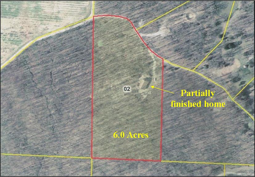 Six wooded acres with a 1500 sq ft home ready for finishing! Drywall is hung, come in and add your finishing touches. Call agent for detailed list. No water but septic is already in place! Nice secluded home site with room for hunting and recreation!