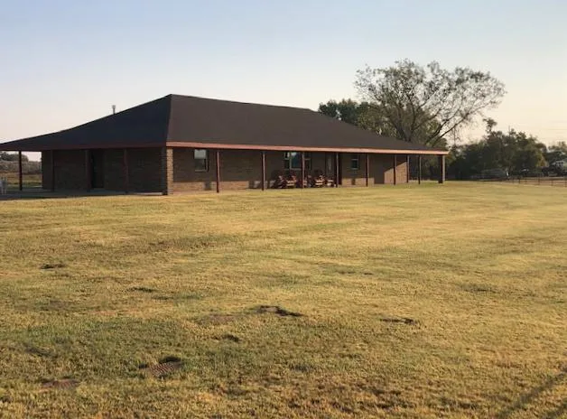 New home built in 2011 in excellent condition 6 acres! Full brick construction with wrap around porch on all four sides. The home has 3 good sized bedrooms and 2 full baths. There is a fireplace in the main living area that is propane. The master bedroom walk in closet is a safe room also. The home has geo thermal H/A and it is handicap accessible thru all doors and hall ways. This home was built first class from top to bottom. Extra concrete was used, extra insulation, all plumbing was sleeved and the list goes on. Outside entrance/exit doors on all four sides. A 30 x 60 shop building insulated and wired with extra built in storage and auto overhead door opener. Disconnect from electric to switch to generator in case of lost electricity. A small pond in the acreage with beautiful trees. Located on Highway 50B just east of Boiling Springs State Park and in the Mooreland school district.