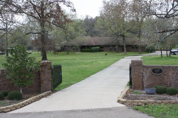 Well maintained and spacious 3/3 brick home on 60 acres sits back off the road and is surrounded by large oak trees in a park like setting.