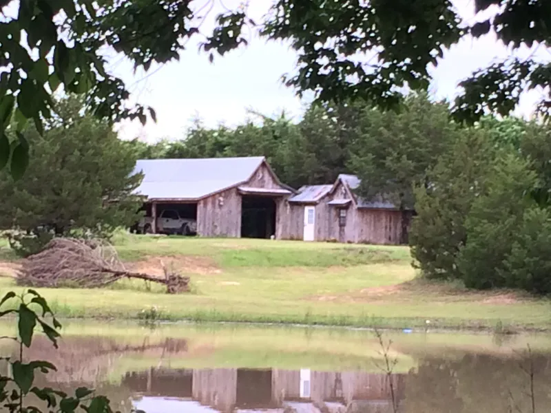 This is a multi-use property that has a great location. There is approximately 30-40 acres of timber, and 30-40 acres of open land. The property marker is not correct, it is the land north of this marker. A winding driveway that follows a tributary of the creek leads you back into a private retreat. A cabin has been renovated recently and a barn was gutted and a foundation was poured under it along with a patio, and it has a good use as a pavilion or could be enclosed as living space. There is an area that has been leveled for a building site overlooking the lake. A small basketball court is beside this and the foundation could be utilized as a foundation for a garage or a shop.