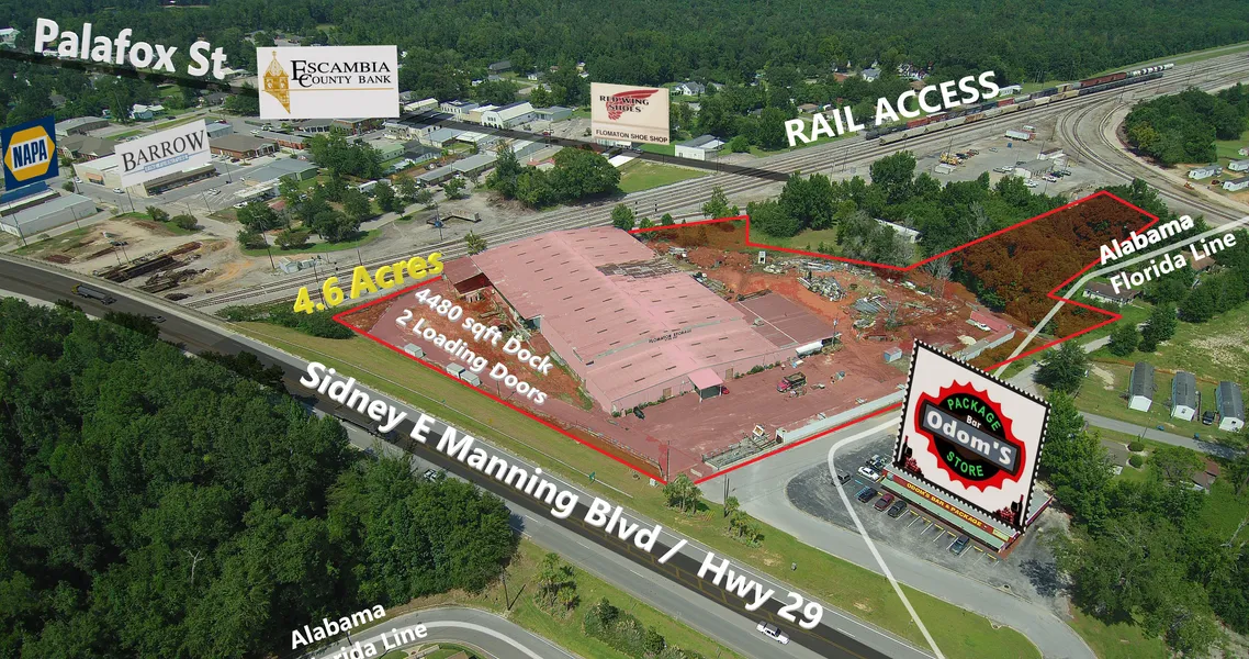 FLOMATON, AL- LOCATION, LOCATION, LOCATION! Bordering the town of Century, FL, this 60,575 sqft warehouse on 4.6+/- acres with 1000 sqft office space and negotiable build-out is available for net lease. This property is convenient to major highways, interstates, railways, shopping & downtown Flomaton. It was constructed in 1988 but renovated in 2006-07 for current use as a warehouse, office, and climate-controlled storage facility w/ 51 units. The building has 22 ft +/- eave height. Loading dock is 4480 sqft and has (2) dock roll-up doors. One door is 10'x10', the other is 16'x16'. There is also a walk-through door that is 3'x7'. The North end of the property backs up to a railroad track. The Southern border of the property is the Florida line. One major asset is the prime location on US Hwy 29/Sidney E Manning Blvd, a 4-lane hwy which joins Alabama & Florida line. Nearly 12,000 cars a d...