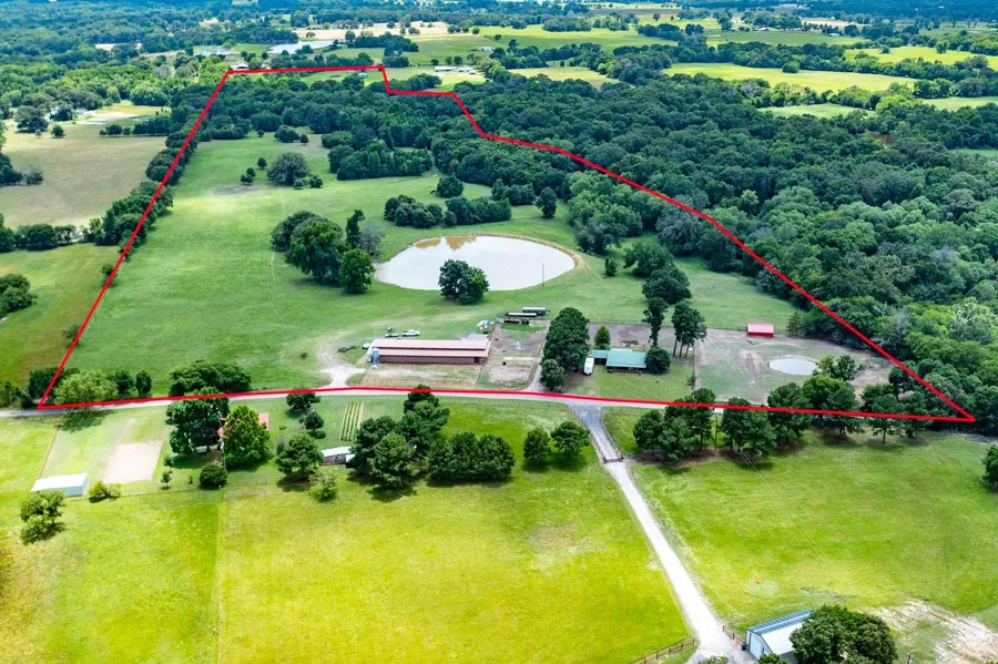 Great opportunity to obtain a 60+- acre working farmstead that is already outfitted to meet your livestock needs. Everything you need to move your animals right in; from the barn with 16 horse stalls, tack room with built in saddle racks, wash area, storage and garage, to the six pipe-fenced working pens and 1.5 acre stocked pond. A beautiful acreage that has managed pastures and beautiful wooded areas with a creek running through. In addition to the main 3 bedroom 2 bath house, there is the added bonus of a second 3 bedroom 2 bath house, that could also be used as a caretakers house, a guest house or a rent house. If you want to live the farmstead life, this is a must see!(Audra Huie)