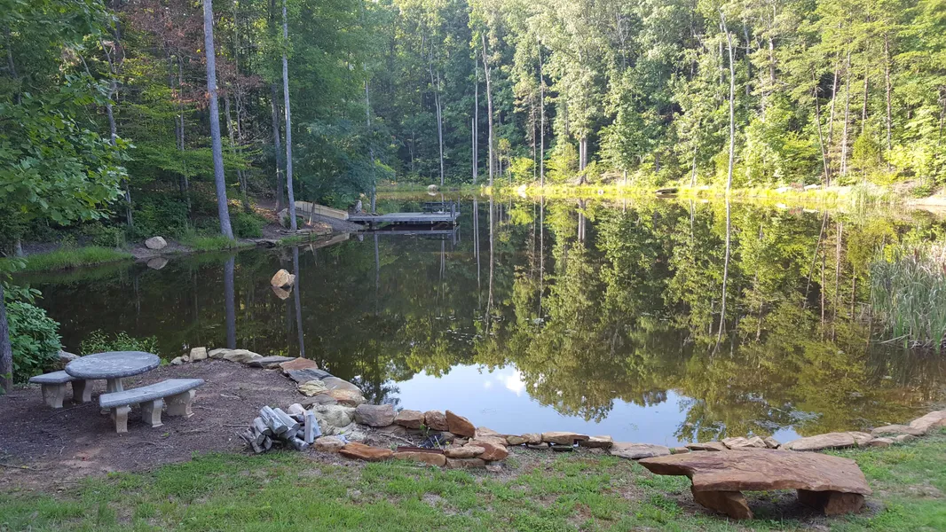 This is the land you have been looking for! Private stocked pond with dock, frontage on Seneca Creek, scenic streams, beautiful woods, trails, wildlife, well, septic, electricity, and privacy it's all here ready for your dream home. Come explore this wonderful tract, sit on the dock, and see what getting away is all about. A private oasis surrounds a unique barn/cabin in the center of the property with lovely flower gardens edged by a stacked stone wall, fire pit, and hammock area. The barn area is complete with well, septic, and electricity. From the barn, it's a short walk or drive to the beautiful 2 acre pond complete with boat ramp, dock, and picnic area. Water features continue to abound with approx. 350' of scenic frontage on Big Seneca Creek plus Little Seneca Creek which flows through the middle of the property complete with rocky waterfalls. Don't wait long ... tour this gem before its gone.