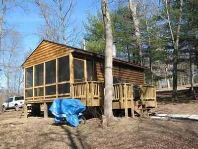Cozy and comfortable cabin on 60 acres. Barely 2.5 hours from Washington, D.C. This is a perfect weekend retreat. Nice wooded view from screened front porch. Cabin is neatly trimmed and in like-new condition. It has electric baseboard heat and also a wood burning stove. The bathhouse is separate and has laundry facility. There is a separate storage building for all your gear. There is an additional site with well, septic, driveway and electric hook up installed. $299,000.