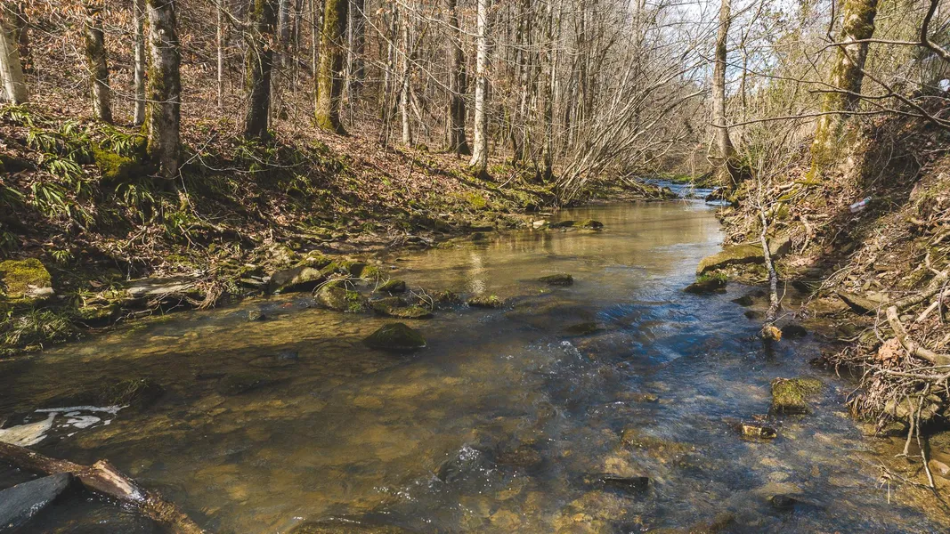 As you venture onto the property, you'll be greeted by the tranquil sounds of a babbling creek meandering through the lush forest. With approximately three thousand feet of road frontage, access to this natural haven is as convenient as enchanting.