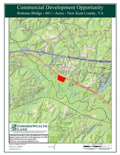 Excellent commercial development opportunity in the Bottoms Bridge area of New Kent County with strong future growth potential. Located 1.7 miles from the Bottoms Bridge Exit (#205) at I-64 with over 2,000' of frontage on the south side of Route 60. The property is comprised of four (4) parcels of 15+/-acres so it could be sold in parts. It is currently zoned residential but the New Kent County Master Rezoing Plan for the Bottoms Bridge service district has the property designated for commercial use. Sewer is on site and water is on the north side of Route 60. Contact Hank Campbell (804.433.1818) or Bill Barnett (804.433.1821)