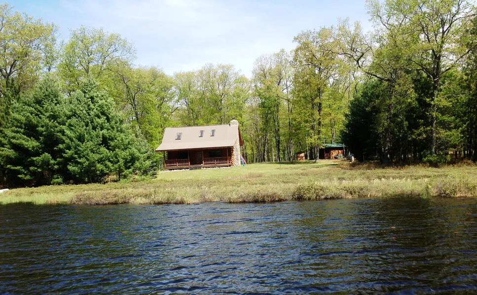 Log home, large lakefront acreage, and seclusion. Got your attention? Not very often do you see these words in the same advertisement. If youre in the market for such an oasis you need to see this one. Gorgeous, meticulously maintained 1250 sq ft, 2 bedrooms, plus loft, log home nestled on 60 wooded acres with nearly a half mile of lake front, and adjoining state land. The views from the full length front porch are like something youd expect in the Upper Peninsula. Log home has hickory cabinets, huge fieldstone fireplace, skylights, and full bath. Theres also a 12 x 16 log sided bunkhouse, with electric, for guests, and a 10 x 12 storage shed at the lakefront to store the toys.