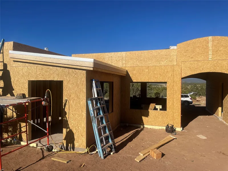 Exceptional, custom build with privacy on a 4.971 acre on a beautiful, wooded lot with magnificent views in peaceful and serene Rowe, located 30 minutes to Santa Fe. Modern Pueblo design and filled with light. The home features a great room with an open floor plan, a well-appointed kitchen and spacious great room. The large master bedroom has a walk-in master closet, spacious bath with oval tub and walk in shower. The second bedroom has a large closets and big windows to enjoy the beautiful outdoors. Modern concrete colored floors and 1485 square feet. There is an attached casita, by a breezeway. Enjoy this separate space for work, a guesthouse, studio or another bedroom. The casita also has a full bath, large closet and washer/dryer. The guesthouse is 390 square feet of additional living space. Upgraded insulation and low E thermal pane windows. Adjacent to National Forest. Buy today and you can assist with the final selections. Great value and in pristine, perfect condition, completion this fall! Easy to show.