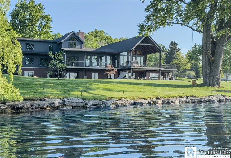 A true dream lake house—this custom timber frame retreat sits on a deep, beautifully landscaped lot with 309 feet of private lakefront and sweeping panoramic views. The home offers 8 stunning BDRMS, including 6 private lakefront suites, and 7.5 impeccably designed BATHS. Every detail has been thoughtfully curated, and the home is impeccably maintained. Step into the open foyer and be greeted by stunning lake views that continue throughout. The main level is flooded with natural light and showcases soaring cathedral ceilings, hardwood floors, tiled spaces, and striking architectural details. The living room features a showstopper fireplace and a generous, airy ambiance that seamlessly connects to the kitchen, dining, sitting areas, and out to expansive decks and terraces. The kitchen is ideal for multiple chefs—offering top-of-the-line appliances, abundant quartz counters, and a 20-foot i...