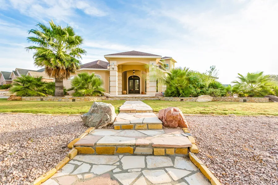 This Exquisite Mediterranean Style Home in The Upper Bluffs Is Calling Your Name! Beautiful Front Entry w/ Circular Drive, 18ft Ceilings, 2 Living, Fireplace, Formal Dining, Gourmet Kitchen, Huge Master Suite, Master Bath has Stone Throughout w/ Large Walk-Through Closet . Open Floor Plan with Beautiful Travertine Tile, Granite and Crown Molding Throughout. Upstairs find 2 Bedrooms with Lg Balcony, Den/Play Area & the Cutest Jack & Jill Bath. Priced Under Appraised Value! Call to see this OOAK!!