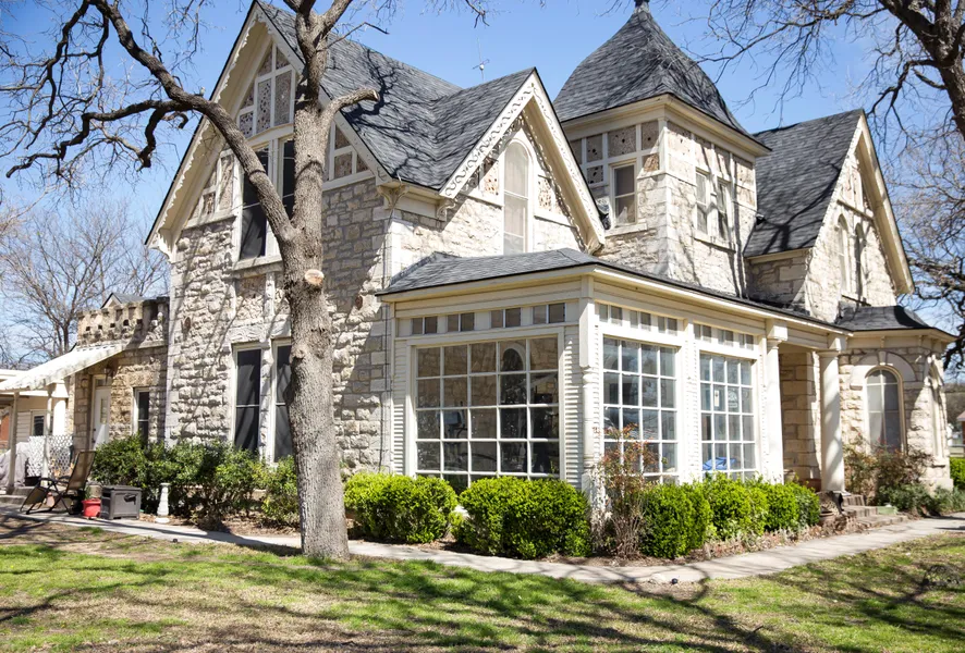 Style, elegance, and history! Behind a gated entry is an original and restored 1883 home. 5 bedrooms, 3 bath home with original hard wood flooring, wood decor, stair case, and yes the original front and screen doors. Original transom windows. 3 fire places, 3 Central H and A, 2 hot water heaters. 4,200 plus square feet in living space and 600 square feet of porches covered and uncovered. Baths have claw foot cast iron tubs and modern showers. Modern cast iron stove in kitchen to look original. Cross fenced 7 acres for animals with barns. Garage built from rock on the place. Oak, pecan, and fruit trees. Pasture area has stock tank with fish. This area is drainage, but house is outside the 100 year flood area.