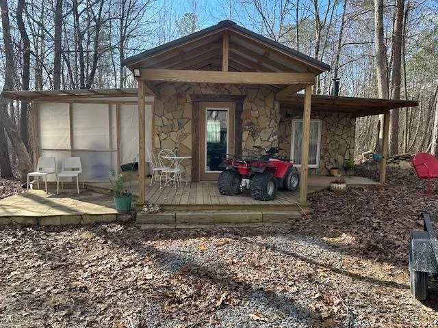 This beautiful corner lot features a circular gravel driveway that has a gated entrance on two streets! This is beautiful, gently rolling, wooded acreage has infrastructure complete. Well and a 1000 gallon low boy septic tank already installed. A temporary power pole is on site. There is a small unfinished cottage on the property. The electric has the rough in electrical inspection completed. The cabin has beautiful TN flagstone for the exterior of the building and a nice patio. The building was intended to be finished and used as an in law cottage and does not meet the minimum 900 sq foot building requirements for a primary residence as listed in the deed restrictions. The sellers located a wet weather spring on the acreage. No homeowners association and minimal restrictions. Abundant wildlife. Annual $200 to keep the gravel roads well maintained. Adjacent acreage also available.