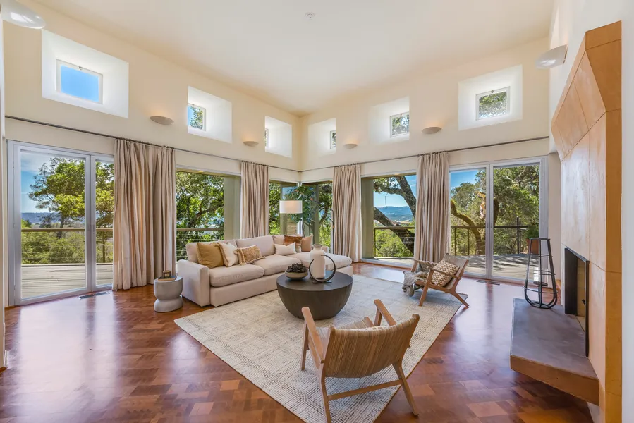 The sophisticated design of this 4 bedroom, 3 full bath, 2 half bath hillside home features a multi-level floor plan thoughtfully designed to create purposeful spaces with vaulted ceilings and expansive windows that flood the home with natural light. The main level represents the heart of this home and connects the vibrant public space, great room, dining and kitchen. The primary bedroom suite is conveniently located on the main level, with 3 guest bedrooms and large family room/office down. Every attention to detail was considered in the selection of finishes including warm woods, broad floor to ceiling doors and windows with a soft neutral palette. Exterior decks open to extensive Alexander Valley views and a terraced garden pathway leads to pool/spa and cabana.