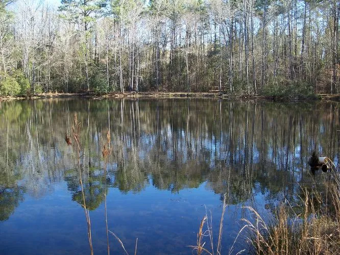 Beautiful country property has hayfield, old growth pine and hardwoods, spring-fed pond, year 'round creek and rustic cypress home. House is distanced almost a mile from paved road entrance. Quiet and secluded. House is cypress upstairs (3 bedrooms and 2 baths) with full basement downstairs including bedrooms and bath. A screened porch spans back of house and overlooks timbered landscape and pond. Deer and Turkey hunting is spectacular. A guest reportedly saw over 40 deer at one sitting...........
