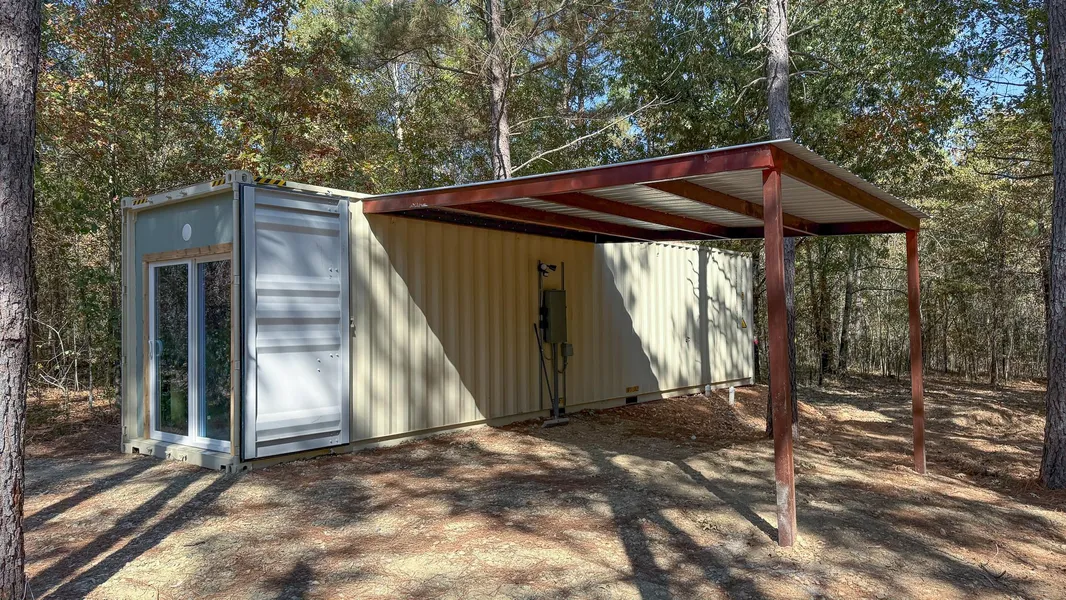 This 61-acre property in Bowie County, Texas, provides a balanced mix of improvements and natural features that make it well-suited for recreational or residential use. A brand-new shipping container cabin is located on the property, already equipped with water, electric, and septic. Built for efficiency and security, container-style structures are known for their durability and low maintenance. Inside, the cabin offers a front bedroom, kitchen with a 30-inch range and refrigerator, a wall-mounted fireplace and TV, a bunk room, and a full bathroom. A large side awning creates additional space for parking or an outdoor gathering area.