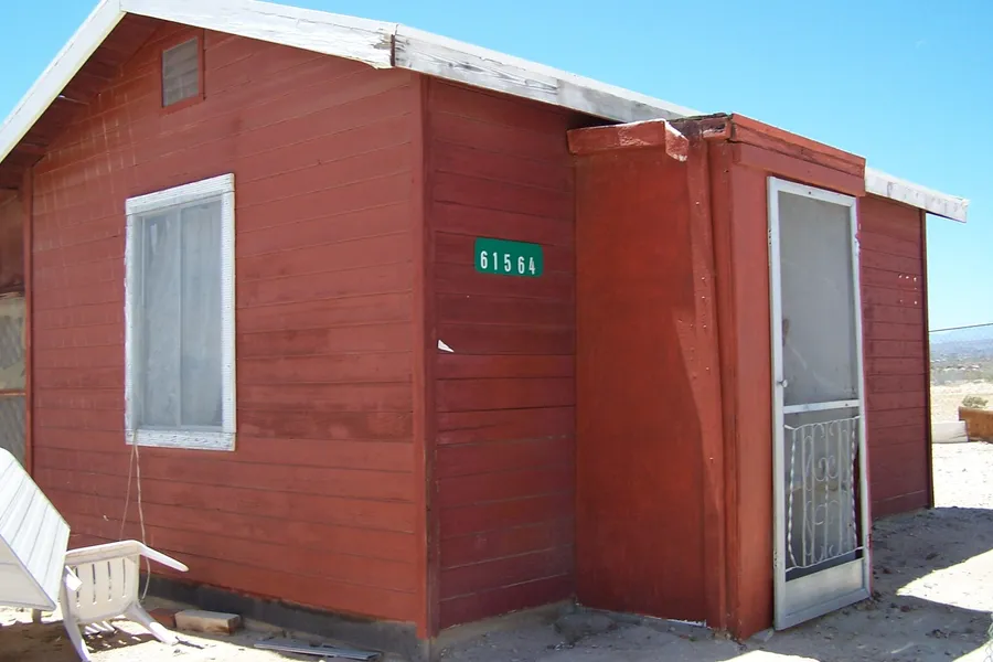 This is a great area with Fantastic Views of the City lights of Joshua Tree, Mt. San Gorgonio, Mt. San Jacinto, Bartlett Mountain and all the way to Twentynine Palms. The Size of the Cabin is an estimate. It is a one Bedroom with an enclosed porch with a working Outhouse. The Cabin is Fenced. Water is in the street and the cabin could be hooked up to Water and Power is also in the street. The Value is the Land, the Property is being sold in its present condition. Don't Wait - Call Now!!