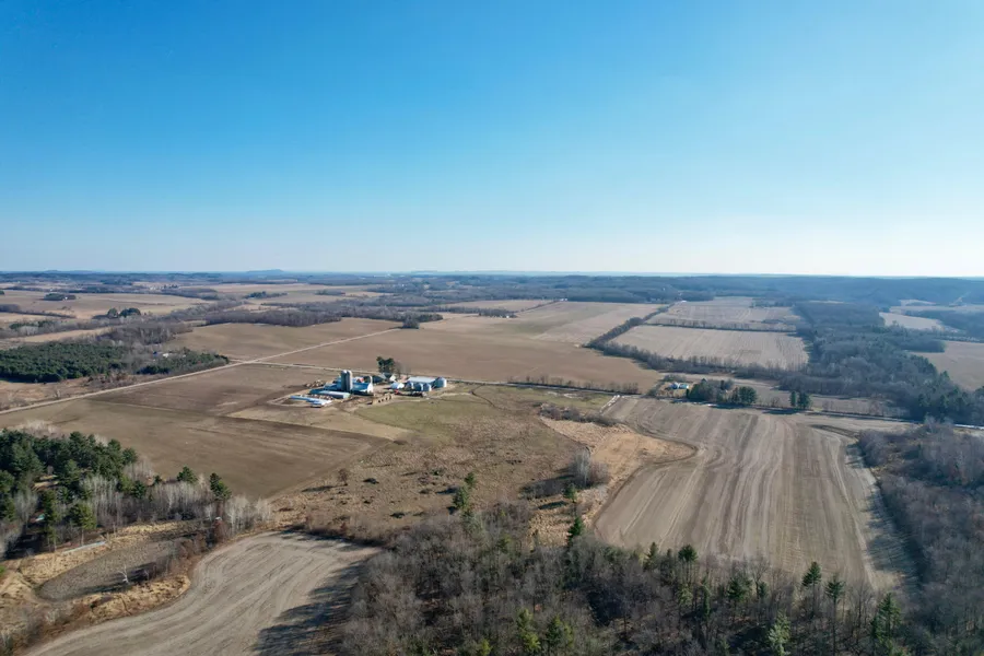 As you pull in the drive at the homestead, you are greeted with a warm bucolic setting. A tastefully and spacious duplex home compliments the farm well. The duplex was built in 2011 and is approximately 3,200 square feet. The tall cathedral ceilings going from the kitchen into the living room is warm and inviting. In the living room, there is a gas fireplace to enjoy the additional warmth during the cold Wisconsin winter. The exterior of the home boasts LP smart siding and a spacious 3 car garage. Each duplex consists of 2 bedrooms and 2 bathrooms, with a full basement. The basement is also plumbed for an additional bath with shower stall. There is a breakfast room that separtates each duplex, and is the perfect place to gather with family friends. There are also several outbuildings on this property to store and work on all of your equipment and a 40x90 hoop shed with concrete for hay storage as well. For grain storage, there are 4 grain bins on the homestead, a 5 thousand bushel, two 10 thousand bushel bins that can be used as drying bins, and a 32 thousand bushel bin. For the dairy farmer, there is also an operating milking barn on the property and plenty of room for young stock.