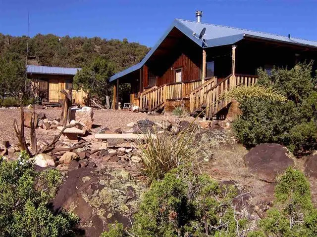*** Live off grid in style. Home is rustic, beautifully designed, and comfortable. Outstanding views from the side of Black Mesa, which is a natural weather break. Three 20+ acre parcels with water run to each, and a second septic system on one. Only 2 miles from pavement, on solid gravel/dirt roads...14 miles to Main St, feeling very private & secure. 172 sq ft guest quarters/office, Quonset building, solar shed, updated solar set up, 2 generators, 2500 water tank high above home...one of a kind property...a must see!
