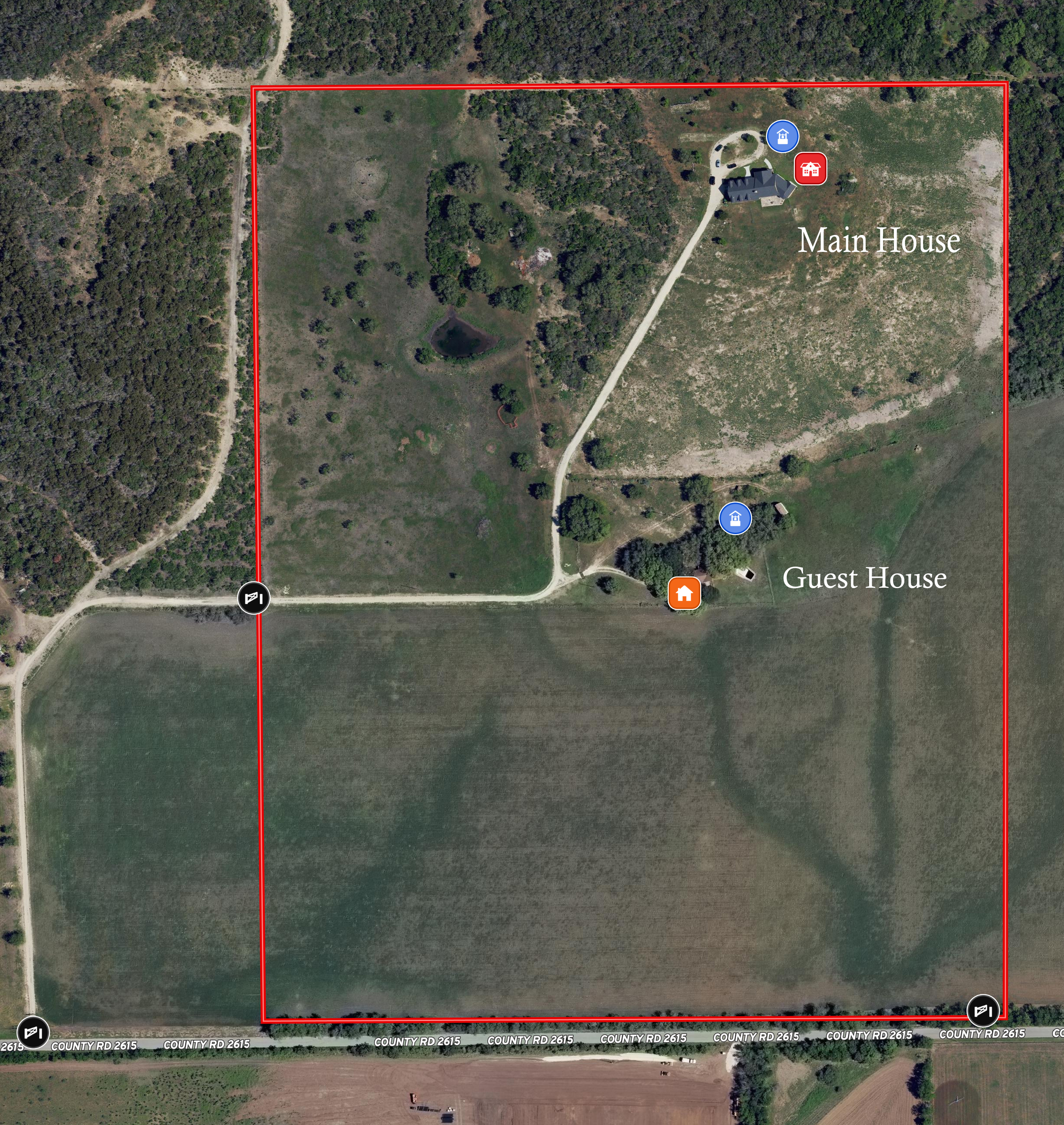 There are 2 water wells providing water to the respective houses. A smaller pond is located on the northwest side of the property.