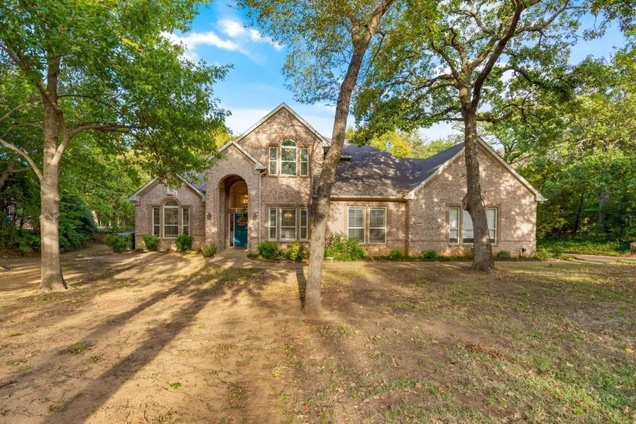 Gorgeous four bedroom three bath home on beautifully manicured lot backing to corp land on Lake Lewisville. This home features handscraped hardwood floors, travertine tile and carpet. Master and guest bedroom down stairs with 2 additional bedrooms up, sharing a jack and jill bath. Master bath has jetted tub, double vanities, and large walk in closet. Property also features an additional large detached garage with heat and air and an overhead door. Perfect to keep your RV out of the elements or for a fun family flex space. Attached to the garage is an impressive covered porch with fireplace over looking large gunite pool. This property is perfect for the growing family looking to entertain and enjoy time with your family.
