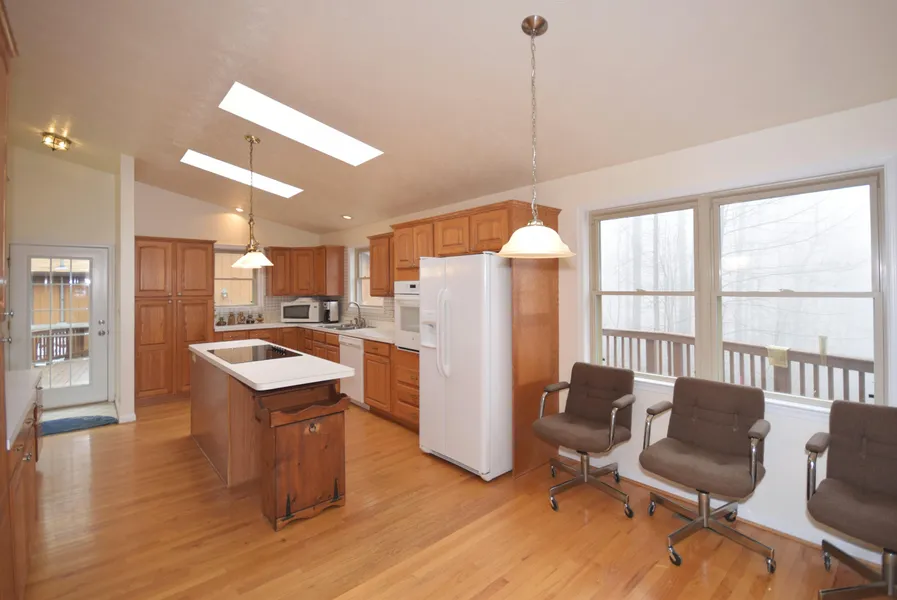 Relax in this contemporary home featuring his/her private offices!Huge master with wood burning FP. Luxury bath, loft can be 3rd bedroom. Detached garage with huge secured storage area, large deck, screened in porch to enjoy the views! Privacy awaits! One level living at its best! Well maintained! Additional lot included, newer roof, paint, hvac,appliances.