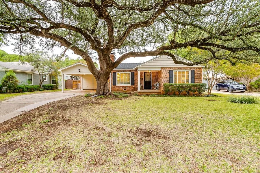 Red brick gem in the heart of a Ridglea North. Just a short walk to play at the park, explore new shops, or find dinner at your favorite restaurants. This home is spacious outdoors and in. Out front, a gorgeous, priceless oak tree welcomes you home. Inside, is light and bright with fresh paint, hardwoods, brand-new carpet, and three flexible living areas. The kitchen has plenty of great space to whip up meals and there is still room to help with homework. Plus, it's open to the family room and breakfast area! The backyard is ready for relaxing and memory-making with a covered patio and lush green yard and it offers a fabulous storage house. With three bedrooms and THREE coveted baths, we think it's pretty special!
