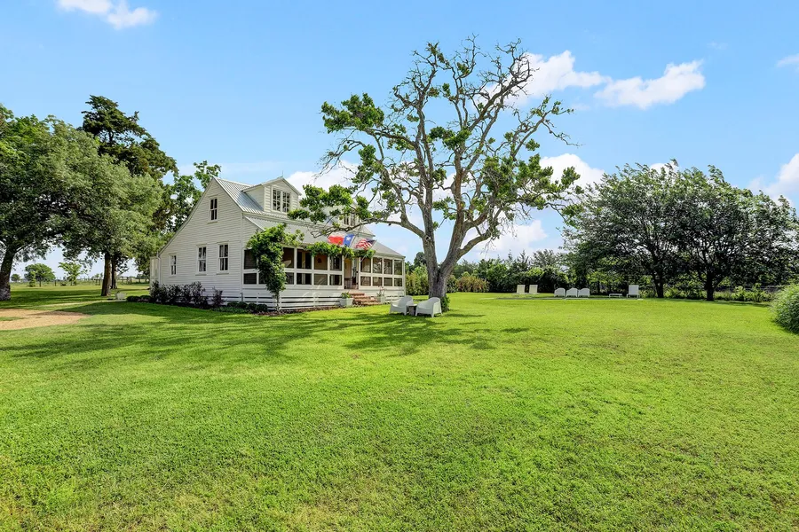 Austin County oasis ideally located a short drive from New Ulm, Industry and Fayetteville, only 20 minutes from Round Top, and just 1 hour drive from Memorial Villages. The bucolic 30 acre property features a renovated 1872 farmhouse, a smokehouse and a barn, all original structures to the property. The pool and spa, located steps from the farmhouses screened porch, were added in 2020. Additionally, there is a 1910 schoolhouse, originally located across the road it served the community until 1954. The structure has been reimagined as a bunkhouse/game room complete with a full bathhouse and large sun deck. The combined square footage of air conditioned living space is approximately 2000 sf. The property is being offered turnkey.