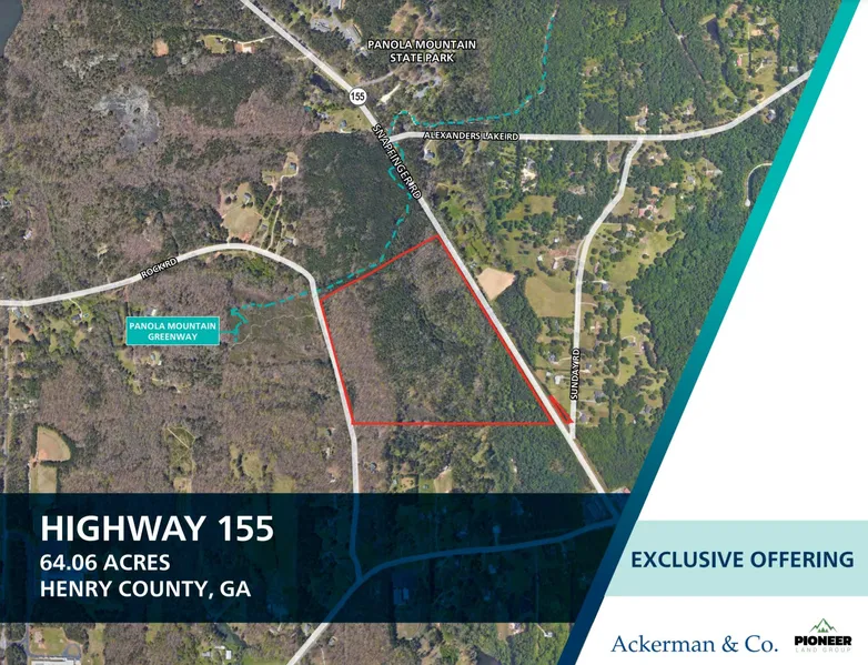 Hwy 155 is about 6 miles from Interstate 675 and less than 1/4 mile from Panola Mountain State Park. It is adjacent to Panola Mountain Greenway and served by the Woodland High School district. Potential for a septic residential community with large lots.