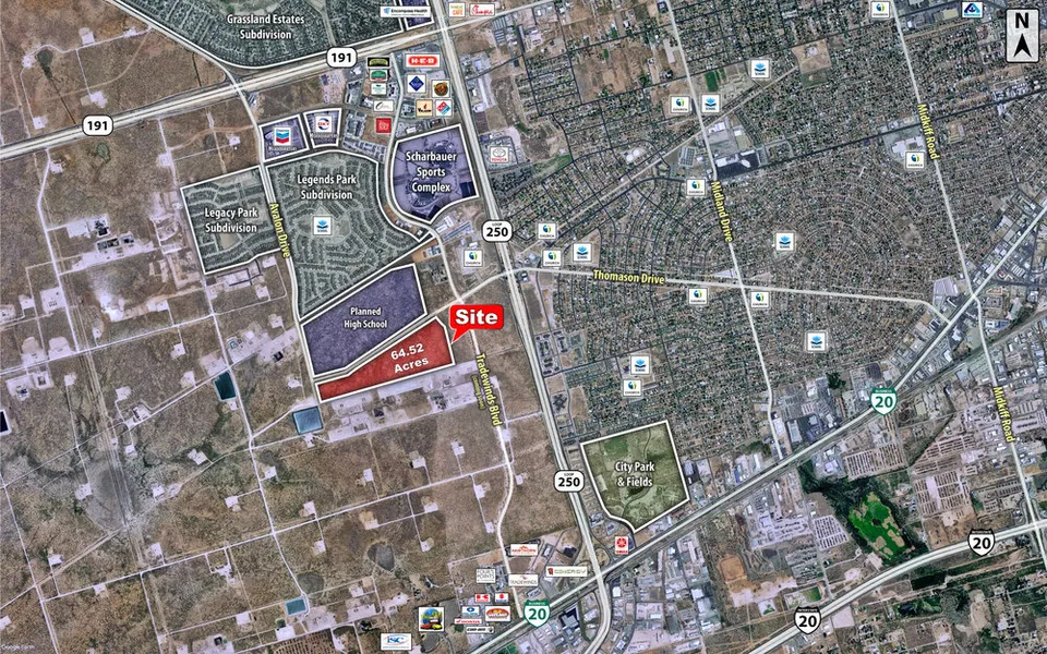 A large multifamily development tract in growing west Midland. Conveniently located in the Tradewinds Corridor. This tract sits just south of a newly planned subdivision which will also supply another school in the immediate area.