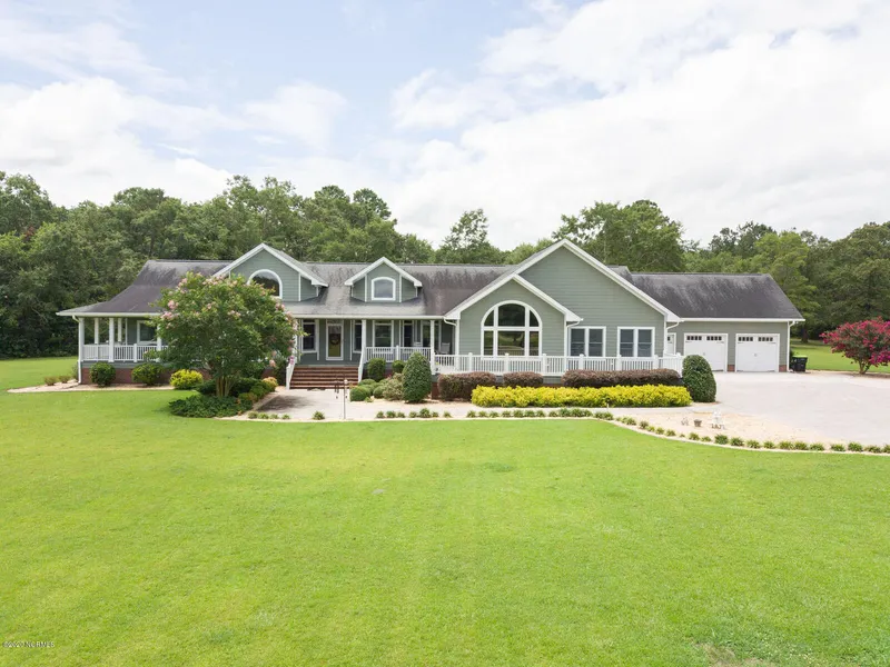 This coastal NC equestrian estate is exquisite with its 7 stall barn, multiple pastures, detached 3 car garage, 60' of enclosed RV parking, & a winding private drive that gives you a sense of arrival to this stunning property. Incredible grounds with over 64 acres total including the home, barn, pastures, and multiple garages/outbuildings. This custom home features 4 bedrooms, 3 baths, and all one story living with enough room to spread out over the 4097 HSF of living area. Spacious owners suite with trey ceiling, built ins, & french doors leading to the spa-like bathroom, complete with oversized jetted tub with waterfall filling feature, in addition to the walk in shower. Luxury appliances in the centrally located kitchen include a double dishwasher, Wolf gas wall oven, & Wolf gas stove. A 350 gallon, owned, underground propane storage tank serves the kitchen appliances, tankless water heater, and fireplace. Above the garage is a climate controlled storage area with walk in attic access. The 3 car detached workshop/garage is climate controlled for storage of personal items or maybe your classic car collection. The Horse Barn is 40' x 62', insulated, includes 7 stalls, a kitchen, bathroom, and lean to storage along the side of the building. If you have 4 wheelers, RVs, boats, or other toys, you have plenty of space to store them out of the elements in the RV garage. Two separate wells serve to irrigate the grounds and provide water to the pasture, but the house is connected to county water. If you like to entertain, the pavilion by the pond is the place to park a grill and have a gathering! Cast a line into the private pond and maybe catch a bass, bream, or bluegill! Don't worry about power outages, there is a whole home generator that runs everything in the event of power loss! None of this property is in a Special Flood Hazard area, so no flood insurance is required. Take the 3D Tour or call for an appointment to see this one of a kind property today!