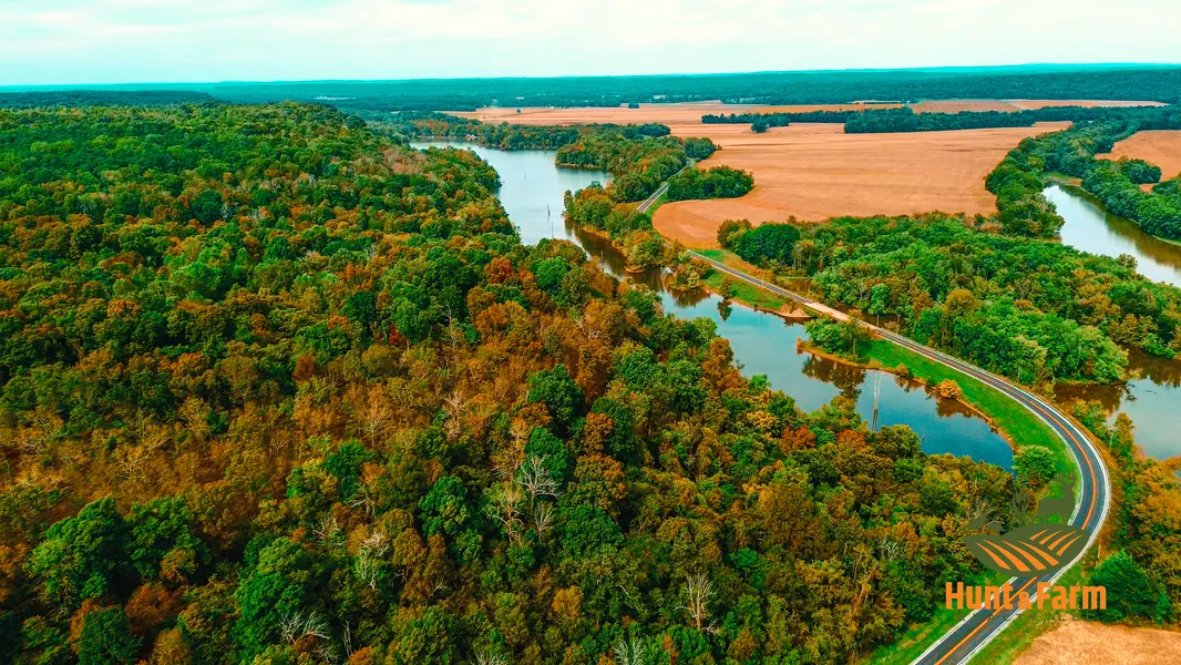 The land features a beautiful mix of terrain, including bluffs, rolling hills, and stands of mature hardwoods—red oak and white oak trees abound. A well-established road system provides convenient access from Bay City Blacktop, winding down around the bluff to your own private waterfront.