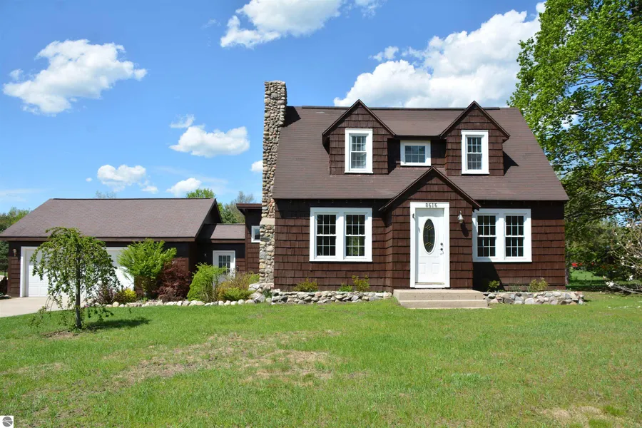 Discover an enchanting vintage Cape Cod style farmhouse nestled on a sprawling 64+/- acre estate in Long Lake township. This remarkable property exudes timeless character and rustic charm throughout its park-like grounds, featuring a beautifully preserved vintage barn, spacious 24x40 pole building, and a meticulously equipped chicken coop ready for your homesteading dreams. Step inside to find a welcoming living room bathed in natural light from its southern exposure, anchored by a stunning wood-burning stone fireplace that creates a cozy atmosphere. The open-concept kitchen flows seamlessly into a great room showcasing a wood stove and newly constructed beam ceiling, adding architectural interest and warmth. The thoughtful main floor layout includes a primary bedroom with a private bath and convenient laundry facilities. Below, a large unfinished lower level offers abundant storage poss...