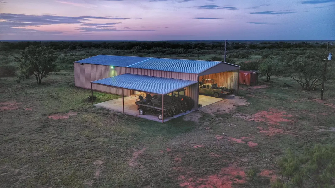 Terrain: Triple A Ranch is an exceptional recreational and cattle grazing property with large ranch neighbors. The 640 acres has a nice mix of mesquite pasture, hardwood creek bottoms, and cleared areas for food plots and Senderos. The centerpiece of the property is the ranch headquarters located in the Southeast corner of the property. It features a Three-bedroom/Two-bath custom built barndominium with beautiful cypress lined interior. The 2,000 Sq. Ft. living area has a vaulted open-design kitchen/living area with an eye-catching center island bar. The master bedroom features a private bath and large walk-in closet. Two additional bedrooms are located opposite the kitchen one being an upstairs bunkroom with plenty of room for extra guests. A spacious utility/laundry room is also found in the lodge with washer, dryer, and plenty of metal shelving for storage. A large 12 wide roll-up door is roomy enough to allow full size vehicle or equipment storage for peace of mind while away from the ranch. This 2,000 Sq. Ft. living area is energy efficient design with a gas log fireplace in the den area, high efficiency HVAC system, and spray foamed interior with an additional R19 layer for the` ultimate in energy saving! Beyond the living area is a 45X60 useful covered entertainment area, offering a great place to enjoy grilling or drinks around the patio style bar. This area also serves as additional storage for tractors and other ranch vehicles. Further storage around the headquarters includes a 20 storage container South of the shop. Triple A has a water system with bulk water storage tanks totaling 3,500 gallons, freeze-proof faucets around camp, and a plumbed water trough in the center of the property. Rural water is also available for added convenience. Surface water is another strong asset to Triple A with five livestock ponds scattered on the ranch and three of those holding water even during extended periods of drought, plus two others serving as wet weather impoundments that are great for waterfowl. These surface water features hold large numbers of waterfowl in the fall and winter. Large amounts multiple types of game are found being drawn to three fenced food plots that are 9, 3, and 7 acres respectively and are positioned strategically. The historic 510,000 W.T. Waggoner estate and another large ranch border Triple-A and provide great trophy potential for whitetail deer, Rio Grande turkey, javelina, and wild hog. In addition to the food plots, multiple Senderos and clear-cut lanes allow for game viewing throughout the ranch. Several premium hunting blinds and eleven feeding stations allow many options to hunt in multiple wind situations. Interior and Perimeter fencing are excellent with pipe gated entrances, cross-divided pastures, and fenced food plots. The ranch features private easement for seclusion but still having convenient access along highway 1919. Triple-A Ranch is an excellent opportunity to take advantage of while being a highly improved property with large neighbors and quality wildlife.