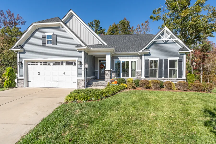 Charming Craftsman style ranch home with 2 first level bedrooms, including a luxurious Primary Suite. Modern open floor plan, hardwood floors and 10 ft ceilings throughout most of the first level. Step into an inviting Foyer leading to a magnificent Family Room with a stone fireplace, and an opulent coffered ceiling, a gorgeous Kitchen with granite countertops, stainless steel appliances and a tile backsplash, and a relaxing Dining Room with abundant natural light and a door leading to the covered rear porch. The lavish Primary Suite has a door leading to the covered rear porch, a tray ceiling, a Primary Bath with a double vanity, tile floor, large shower, water closet, and a walk in closet. Also on the first level is a bright Office with french doors, a 2nd Bedroom, a Full Bath with tile floors, a Laundry Room with tile floors, a Mudroom with built-ins, and a 2 car Garage. The lower level boasts a massive Entertainment/Flex/Bedroom, a 3rd Bedroom/Flex Room, a Full Bath with tile floors, an unfinished room that could be finished by the next home owner, and another oversized unfinished room perfect for storage. At the end of a cul-de-sac, nestled in natural tranquility, the exterior has many attractive features including a concrete driveway, a 24 X 11 covered rear porch that can be accessed from both the Dining Room and Primary Bedroom and overlooks a sizeable back yard and natural area, ample storage under the rear porch, irrigation, and maintenance free yard care provided by the HOA. All of this located in the Charleston Club section of Magnolia Green, a block from the pool and clubhouse, golf, pedestrian/nature trails and so much more.