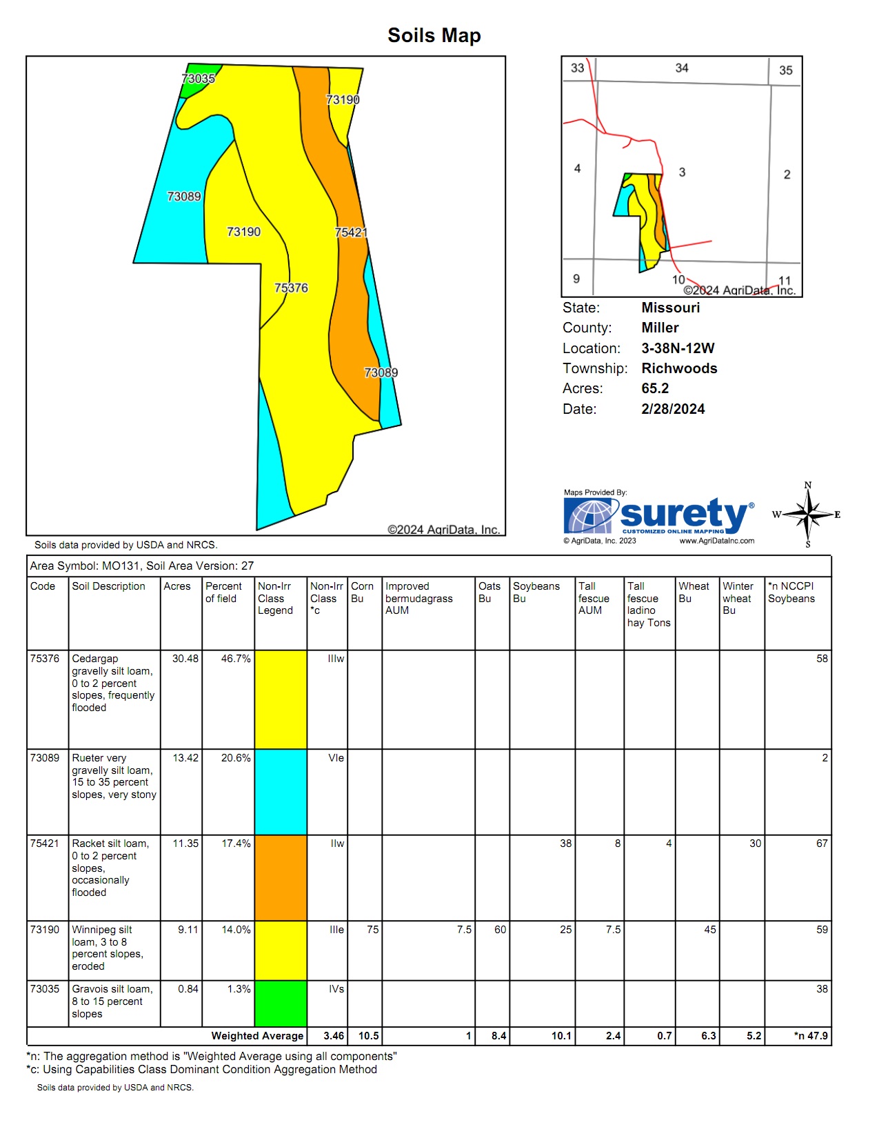 Search for detailed parcel information including; Elevation & Vegetation Maps, Ownership Information, Detailed Parcel Information, Crop History Map, Soil Survey Productivity Data, and more.