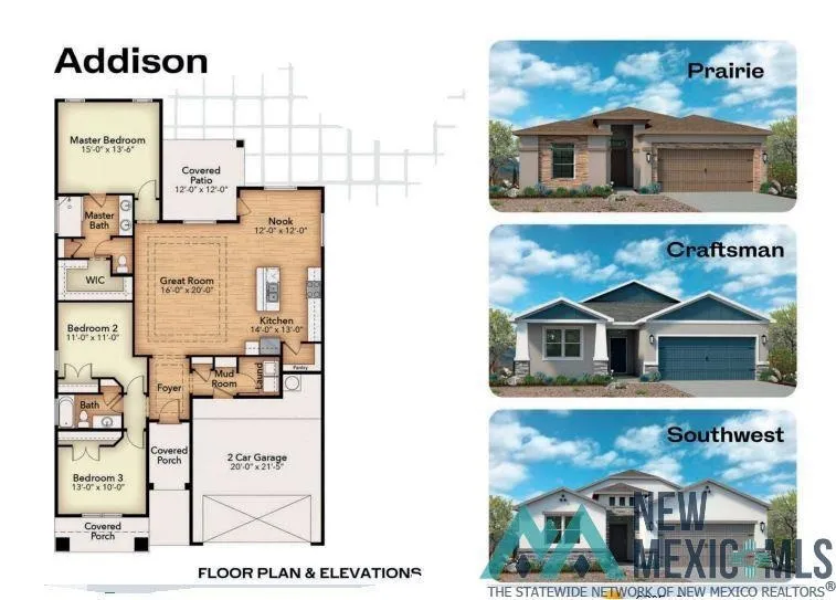 This Addison floor plan features a great room with coffered ceiling that flows into an open concept kitchen and spacious dining nook. A quiet master bedroom extends into the back yard and leads into a luxurious master bath with walk in closet. There is a mud room immediately near the 2 car garage and foyer to provide a space to organize your daily essentials. Two bedrooms near the front of the home are located near the 2nd full bathroom and foyer yet retain their privacy and comfort. Back yard is enclosed by a block wall fence and covered back patio. Front yard is xeriscaped with plants on a drip system.