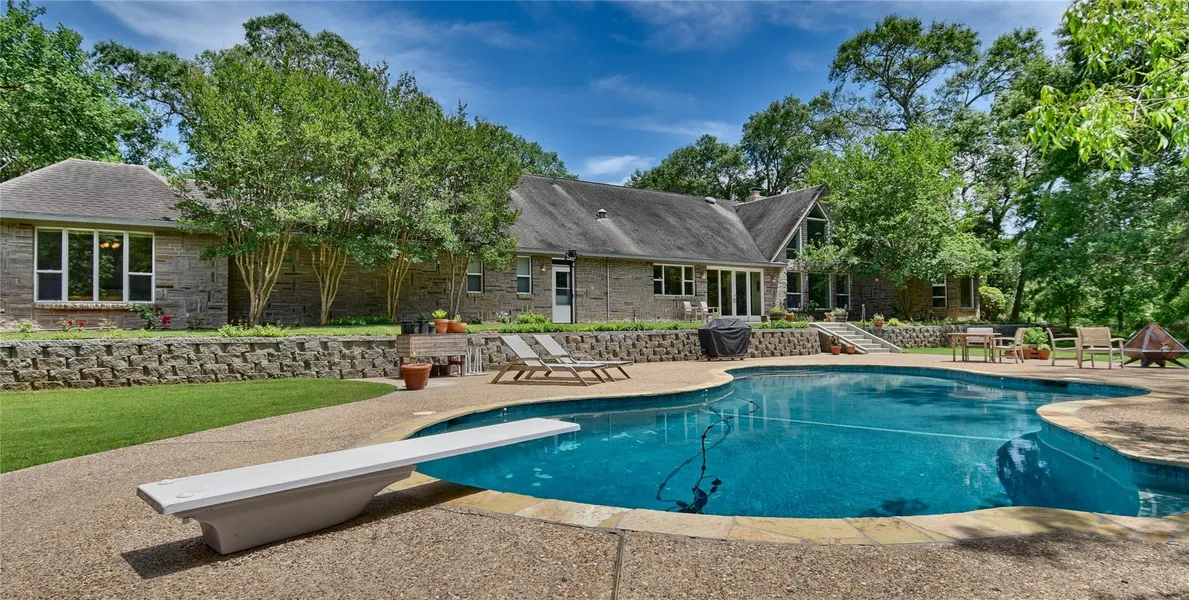 A complete escape! Once you enter the gate and wind through the trees you will find this private, wooded 65 ac. ranch with a 4737 sq.ft. custom, stone 1 story home with 5 bdrms, 4 bths, large family room and a chef's kitchen. Everyone will enjoy the park-like back yard with a pool, patio outdoor living/dining space and regular deer and wildlife sitings. Through the woods you'll find a 3000 sf airconditioned shop with a large tractor bay & flex space. Upstairs is an 1800 sq.ft. 2 bdrm/1 bth apartment. Other features: stocked pond, 2+ miles winding trails, wet weather creek, shooting range and easy to maintain wildlife exemption. Completely quiet location. No train or highway noise. Located in a Migratory Fly Way so there is a huge variety of birds. This property has been a haven for wild deer for years. Many fawns are born on this property each year. Great for all kinds of animals. 2 TAX ID NUMBERS - MAP DOESN'T SHOW ALL OF LAND