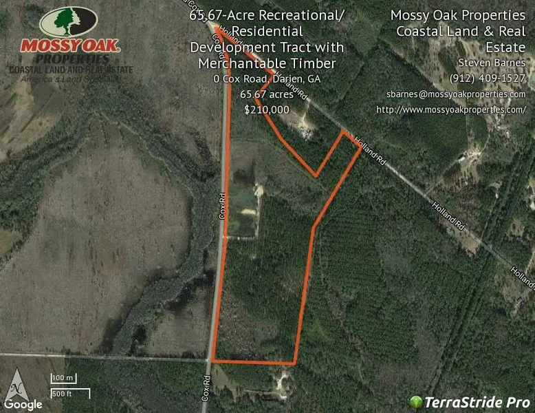 This 66-acre recreational-use/ hunting tract is conveniently located across Cox Road from the Altamaha River WMA (30,000+ acres) in McIntosh County near Darien, GA 31331. The property is also just south of the Townsend WMA (South Tract), Georgia's newest public hunting area totaling approximately 7,000 acres that offers access to a boat ramp on the Altamaha River. This tract affords the avid hunter opportunities to take whitetail deer, hogs, turkeys either on site or through exceptional public land access. In addition to hunting, the tract affords ATV trail riding and horseback riding opportunities. In addition, with paved-road frontage and convenient access to Interstate 95, Brunswick (30 minutes) and Savannah (one hour), this property also has the potential to be subdivided into smaller residential lots. Contact Steve Barnes with Mossy Oak Properties at 912-409-1527.