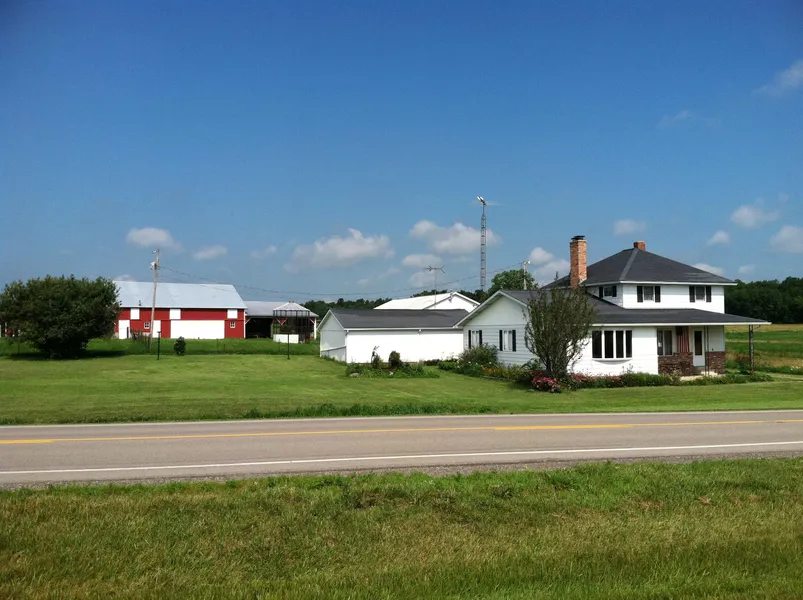 3907 S.R. 292 West Mansfield, OH 43358:Nice 4 BR, 2 BA farmhouse sitting on a total of 65.75 acres with numerous buildings & pasture! Interior features spacious eat in kitchen with 2 separate built in matching hutches & can lighting, enormous family room with bay window & brick wood burning fireplace, formal living room features custom hardwood floors, nice utility room, master bedroom on 1st floor, duel heating system featuring separate gas forced air system & wood / coal forced air system. Exterior features 50 'x 112' livestock barn, 32' x 56' heated shop, 24' x 54' 3/4 sided equipment barn, & 24' x 32' 2 car detached garage. Exterior also features fenced pasture, rear patio on house, & numerous perennial flowers! Grass lane runs beside the tree lined creek bed & access to the 51.25 Tillable Acres & 4.75 Acres of woods Call Jeremy Hankins to schedule a time to view this property! 937-935-2450