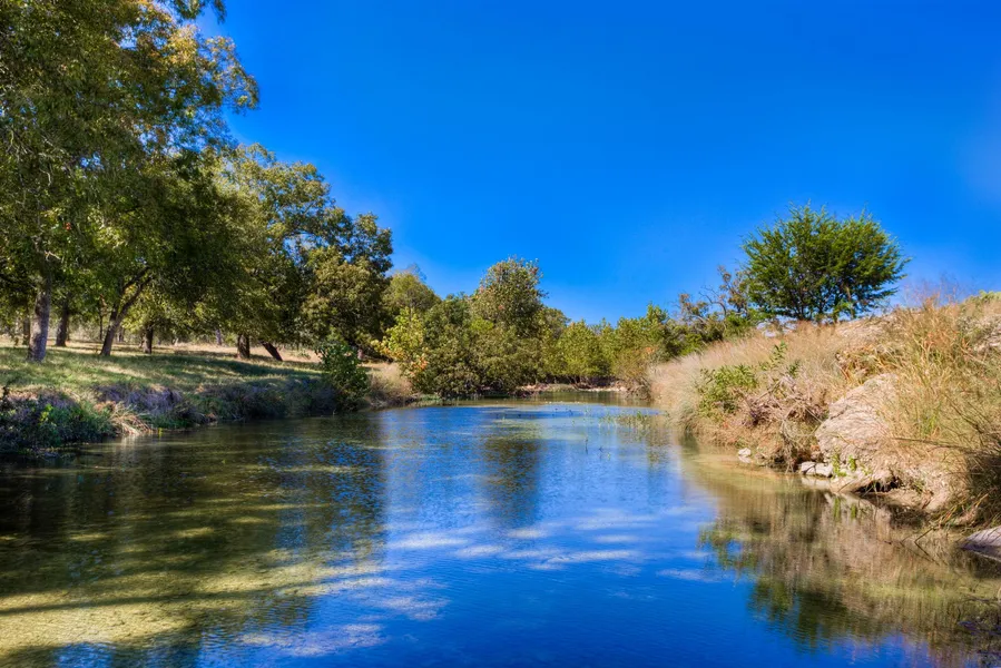 An idyllic setting just outside Fredericksburg and near Kerrville features a gorgeous home, pool and guesthouse, on high fenced acreage featuring Wolf Creek. Wildlife includes Blackbuck Antelope, whitetail deer and other native species. The gentle terrain is perfect for relaxation, recreation, hunting or horses.