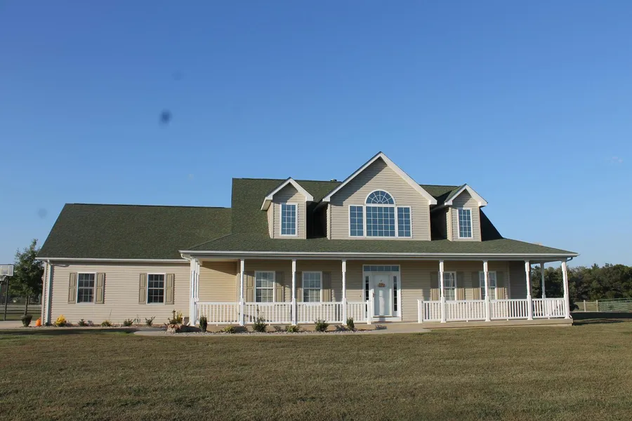 The 10 room house has endless features including 4 bedrooms, 2.5 bathrooms, stone gas or wood fireplace, mostly wood floors and berber carpeting . . . every window has a great view. 2 car attached garage, the main barn/arena is 60 x 80 with 20 in. lean-to on both sides for a 100 x 80 building, 3 loafing sheds; 24 x 45 3-sided, 15 x 45 2-sided and a 12 x 24.