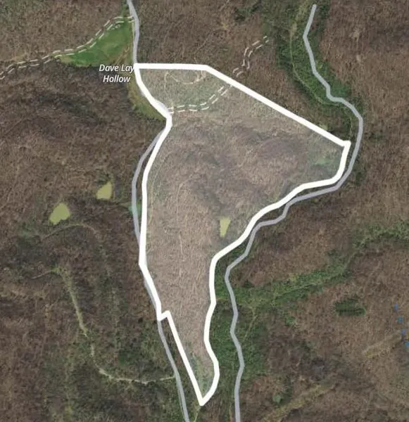 From the north at Lexington, KY, go south on I-75 and take Exit 160 (Jellico) at the TN-KY state line. Google maps directions: enter "Dave Lay Hollow Tennessee." From the off-ramp on Exit 160 it is 11 miles to the property. Proceed south through Jellico on 5th St/Main St/297 continuing south on Hwy 297/Newcomb Pike and turning right onto Whistle Creek Rd/Capuchin Rd west toward the county line, then bear left going south on Lamb Mountain Rd/Whistle Creek Rd. When you see a 2-acre hay field on your right you're at the northern boundary for this parcel.