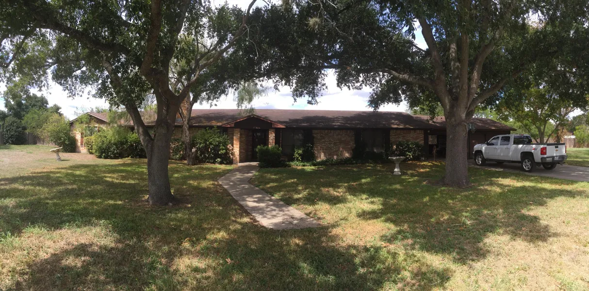 For Sale in Three Rivers, ranch-style, brick home on 1.2 acres filled with mature trees. This large, attractive home features two living areas, separate dining, four bedrooms, two baths and a two car garage. Other features include a wood burning fireplace, carpet, wood paneling throughout, ceiling fans, and double vanities. The spacious kitchen includes a multitude of cabinetry, butcher block counter tops, wall oven, and double sinks. The covered, screened patio in the back highlights the impressive fenced backyard.