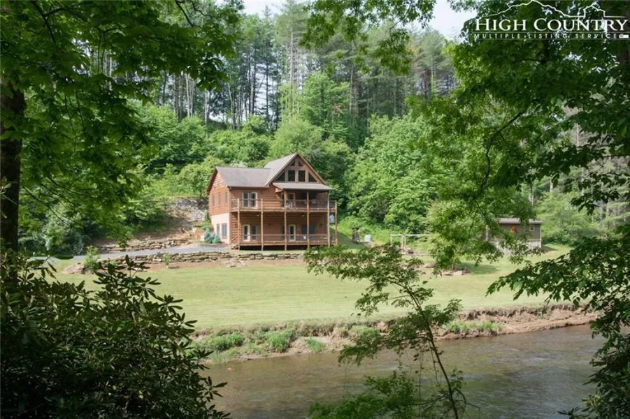 QUALITY CRAFTSMANSHIP & RIVER FRONTAGE! You will appreciate the attention to detail throughout this custom designed and built log-sided home offering 285 feet of frontage on the North Fork New River. The living area is highlighted by soaring T&G ceiling, stone fireplace with gas logs, open staircase and easy flow into dining & kitchen. Kitchen features beautiful knotty alder cabinetry, granite counter tops, stainless appliances & island with bar seating. Enjoy gleaming hand-scraped teak flooring & high windows filling the area with natural light. Main level also offers master bedroom with private bath including double vanity & tile shower and powder room for guests. The upper level provides an open loft area suitable for office/study or additional sleeping. Lower level features large den, two bedrooms, full bath & laundry room. Enjoy the great outdoors and view of the river from main level and lower level decks. Great yard for children and/or pets. Easy access to the river for tubing, canoeing, kayaking or fishing. Includes fire pit area with plenty of seating for family & friends and large outbuilding/workshop perfect for storing your river toys.