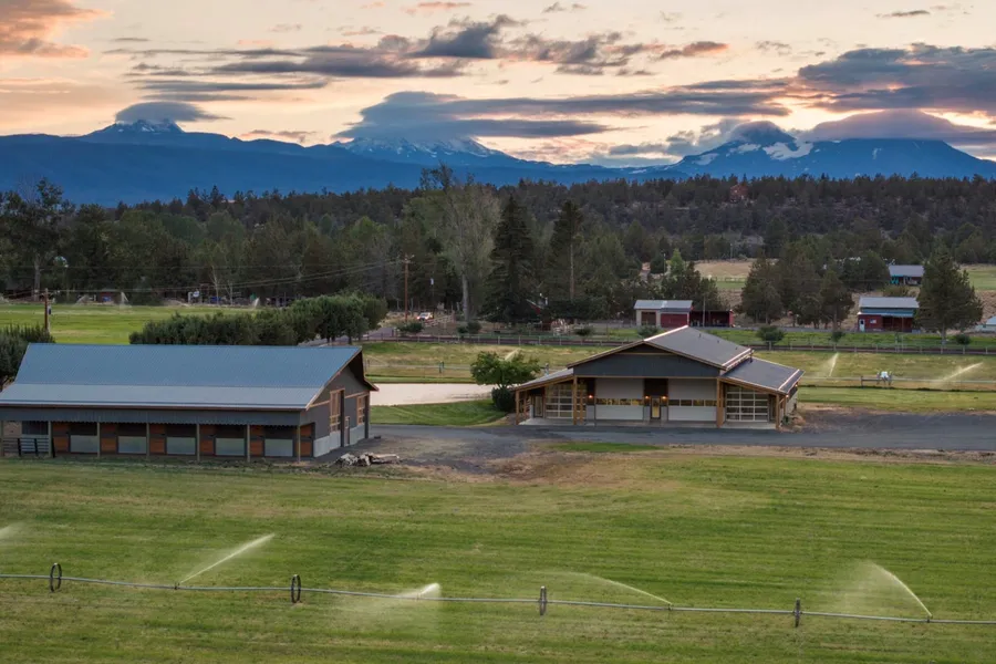 Experience luxury on this 19-acre irrigated Tumalo estate, framed by the Cascade Mountains. This custom-built barndominium features nearly 4,000 sq. ft. of shop space with EV charging and ample parking. An oversized barn with garage doors and attached lean-to is ready for six horse or animal stalls. Inside the home, an open-beam great room offers vaulted ceilings and natural light. The gourmet kitchen boasts granite countertops, stainless steel appliances, and a pantry. Recent upgrades include fresh paint, new carpeting, and a new tankless hot water heater. Enjoy spa-like steam showers and walk-in closets in both ensuites. The main-level primary suite offers vaulted ceilings and upstairs loft suite includes a remodeled bath and private balcony with panoramic views. Newly reseeded Orchard Grass fields enhance the estate, ideal for expansion, farming, or ideal horse property. Enjoy modern ...