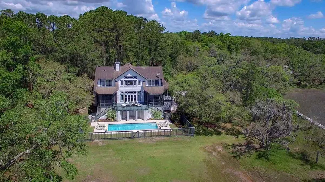 Located 35 minutes from downtown Charleston, this beautiful custom home sits on 5 acres of natural highland with spectacular southerly marsh and waterfront views, all within in a very small serene private enclave with low HOA fees. This raised traditional style home offers views from every room and a functional floor plan with living area open to a well-equipped chef's kitchen. From the main level, walk out onto a large open deck or enjoy the breeze from two screened-in porches. The master suite, located on the main level, has a large walk-in closet and 2 linen closets. Laundry room and half bath handily located off kitchen. Upstairs, all three bedrooms (two with ensuite baths, walk in closets, & private terraces) have incredible views.