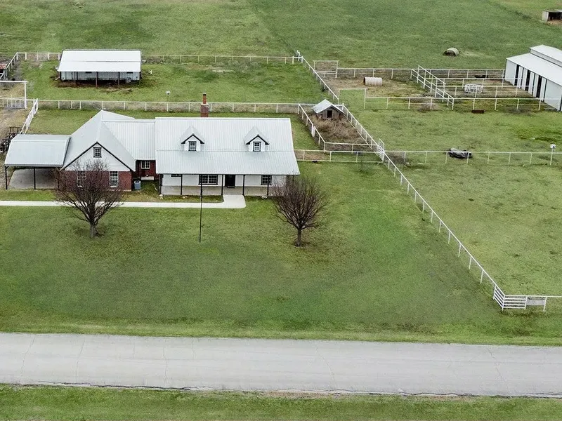 Spanning 5.97 acres, this exceptional property offers the perfect blend of country charm and modern functionality. The 3-bedroom, 2-bathroom home features rich wood trim, matching doors, and wood-look flooring throughout. The kitchen boasts granite countertops, bar seating, and a full-size dining room, while the inviting living room showcases an Austin stone fireplace, a built-in entertainment center, and easy access to the covered back patio. The private master suite, tucked off the kitchen, features French doors leading to the backyard, a spacious walk-in closet, double sinks, a walk-in shower, and a separate bathtub. Two additional bedrooms and a full bath are conveniently located off the living room. Upstairs, a versatile game room and flex space offer endless possibilitiesperfect for an office, extra bedroom, or craft room. Outside, this property is a dream for hobbyists and horse lovers alike. It includes two 30x40 shops, both with electricityone insulated with a 40x20 awning for additional workspace. The 40x60, 8-stall barn is equipped with three turnouts, stud walls, and a feed room, making it ideal for livestock or equestrian needs. A 20-person storm cellar provides peace of mind, while an Old West-style woodworking shop with extra storage adds to the property's unique charm. All pipe fencing and cross-fencing ensure security. This one-of-a-kind property offers space, versatility, and timeless character