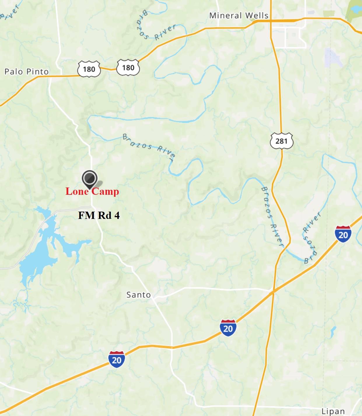 66.56 Acre Cattle & Recreational Property, Palo Pinto County, Texas: Approximately 1 hour & 20 minutes west of Fort Worth, between Santo and Palo Pinto near Lone Camp. Mostly in established coastal bermuda grass in sandy loam soil with some large pecan trees and two nice stock ponds. Level to gently sloping with scattered to thicker timber in the back. Paved on two sides. An old inoperable water well. Some minerals. $995,000.00.