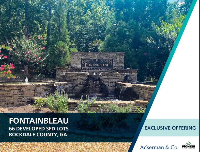 Fontainbleau offers the following attributes: 66 fully developed SFD lots with water and electrical installed on each lot.Large lots with an average lot size of 1.39 acres. Twenty-seven lots with frontage on South River. Owner is the Declarant of the subdivision. The declarant is willing to include assignment of declarant rights (providing architectural design flexibility) with a bulk sale. Fontainbleau is in the Salem High School district where the average new home price in 2020 is $361,000. Located on the county line almost directly between downtown Conyers and downtown McDonough, offering nearby retail, dining and entertainment.